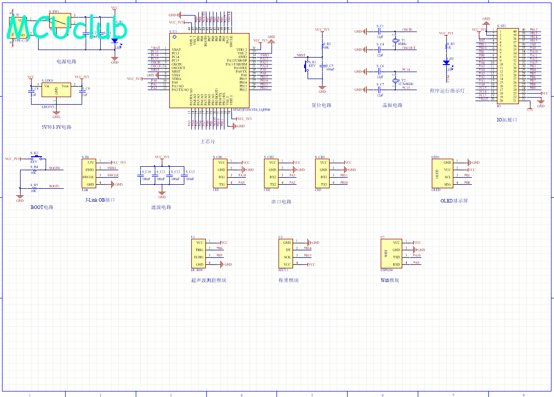 PCB图是由原理图导出,封装很大一部分都是作者自己绘制,不提供封装库,只提供连接好的源文件,可以直接在嘉立创进行打板。两层板,上下覆铜接地。
