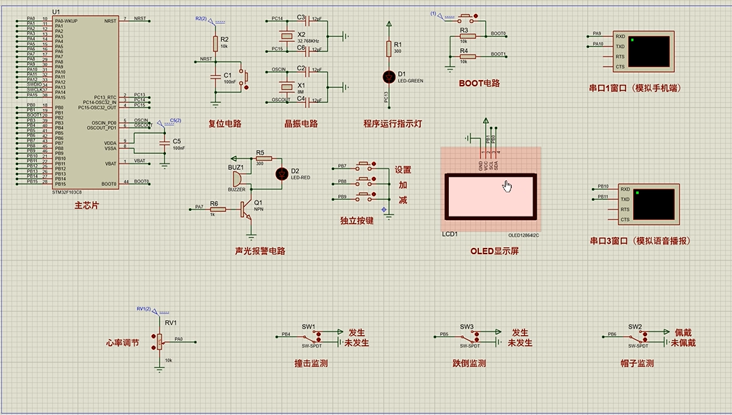 注意:部分实物元器件仿真中没有,仿真中会用其他工作原理相似的元件代替,这样可能导致实物程序和仿真程序不一样