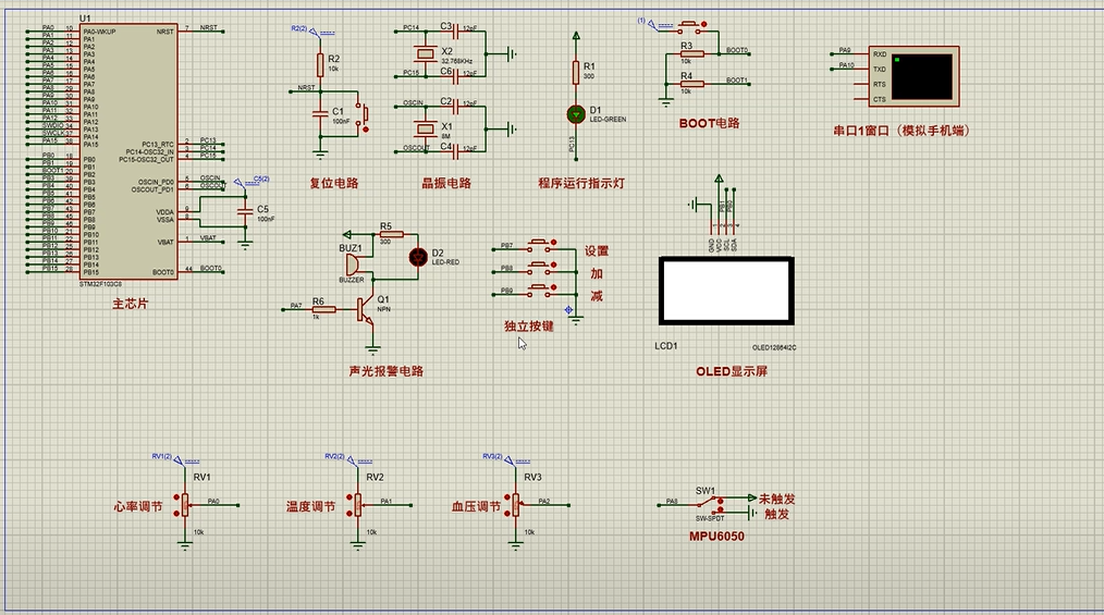 注意:部分实物元器件仿真中没有,仿真中会用其他工作原理相似的元件代替,这样可能导致实物程序和仿真程序不一样