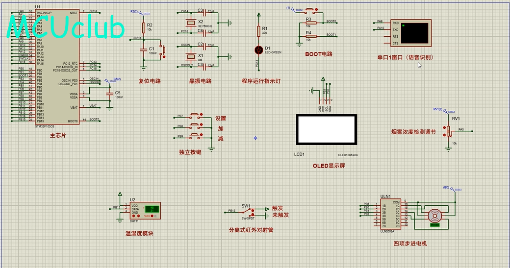注意:部分实物元器件仿真中没有,仿真中会用其他工作原理相似的元件代替,这样可能导致实物程序和仿真程序不一样