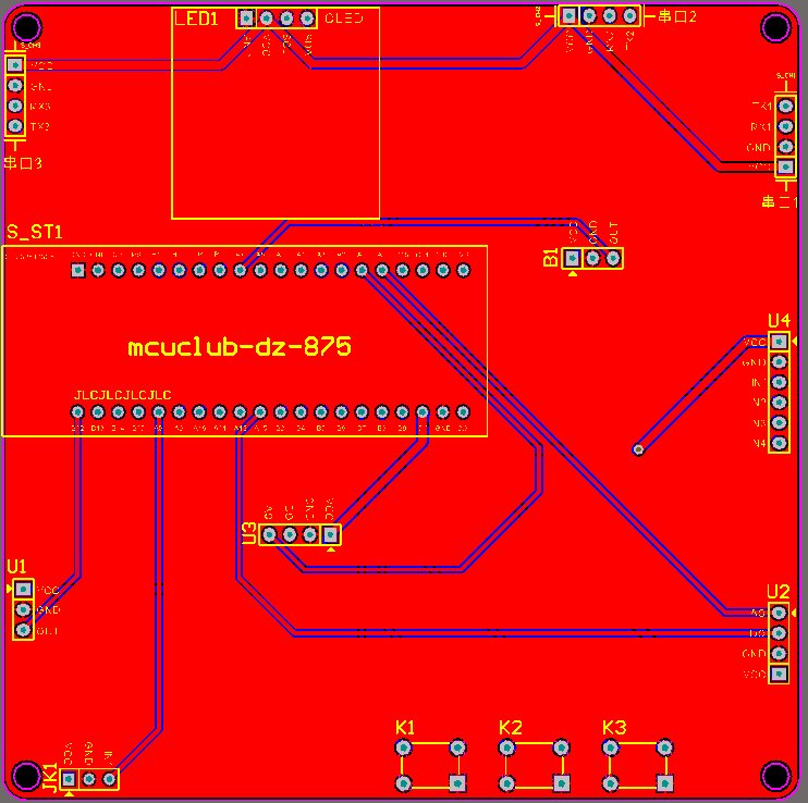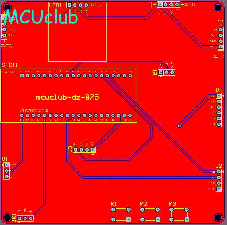 注意:PCB图中间有一个项目编号,隐藏在单片机底座下,插入单片机后不会看到。如果想截没有项目编号的PCB图,可在PCB源文件中点击删除。另外,如果想在实物PCB板上加自己的信息(比如日期、学号、姓名等),可联系客服。