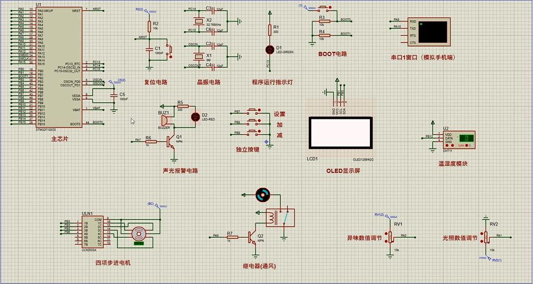 注意:部分实物元器件仿真中没有,仿真中会用其他工作原理相似的元件代替,这样可能导致实物程序和仿真程序不一样
