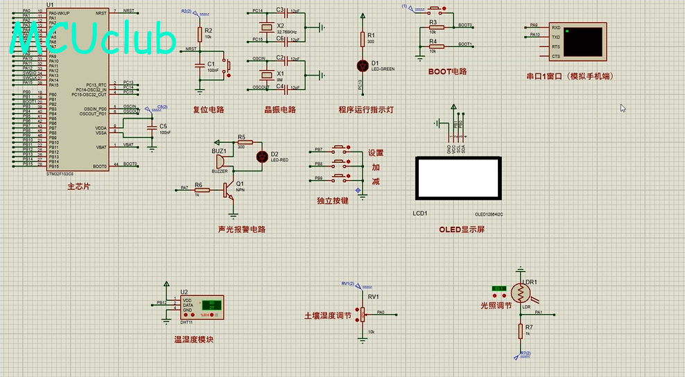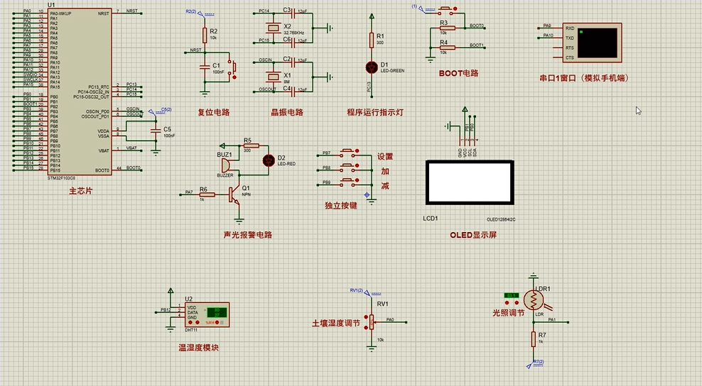 注意:部分实物元器件仿真中没有,仿真中会用其他工作原理相似的元件代替,这样可能导致实物程序和仿真程序不一样
