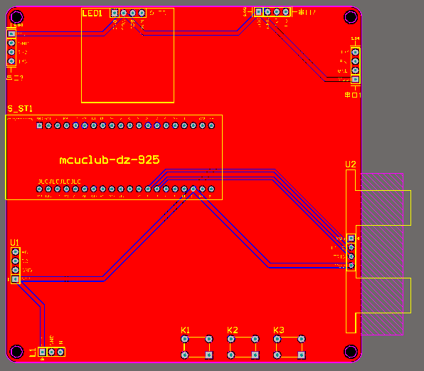 注意:PCB图中间有一个项目编号,隐藏在单片机底座下,插入单片机后不会看到。如果想截没有项目编号的PCB图,可在PCB源文件中点击删除。另外,如果想在实物PCB板上加自己的信息(比如日期、学号、姓名等),可联系客服。