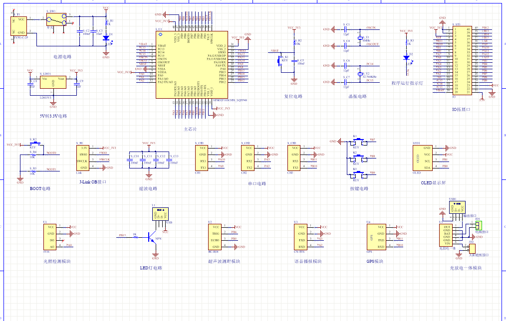 PCB图是由原理图导出,封装很大一部分都是作者自己绘制,不提供封装库,只提供连接好的源文件,可以直接在嘉立创进行打板。两层板,上下覆铜接地。
