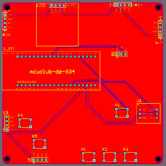 注意:PCB图中间有一个项目编号,隐藏在单片机底座下,插入单片机后不会看到。如果想截没有项目编号的PCB图,可在PCB源文件中点击删除。另外,如果想在实物PCB板上加自己的信息(比如日期、学号、姓名等),可联系客服。