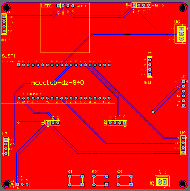 注意:PCB图中间有一个项目编号,隐藏在单片机底座下,插入单片机后不会看到。如果想截没有项目编号的PCB图,可在PCB源文件中点击删除。另外,如果想在实物PCB板上加自己的信息(比如日期、学号、姓名等),可联系客服。