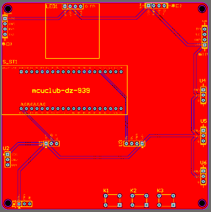 注意:PCB图中间有一个项目编号,隐藏在单片机底座下,插入单片机后不会看到。如果想截没有项目编号的PCB图,可在PCB源文件中点击删除。另外,如果想在实物PCB板上加自己的信息(比如日期、学号、姓名等),可联系客服。
