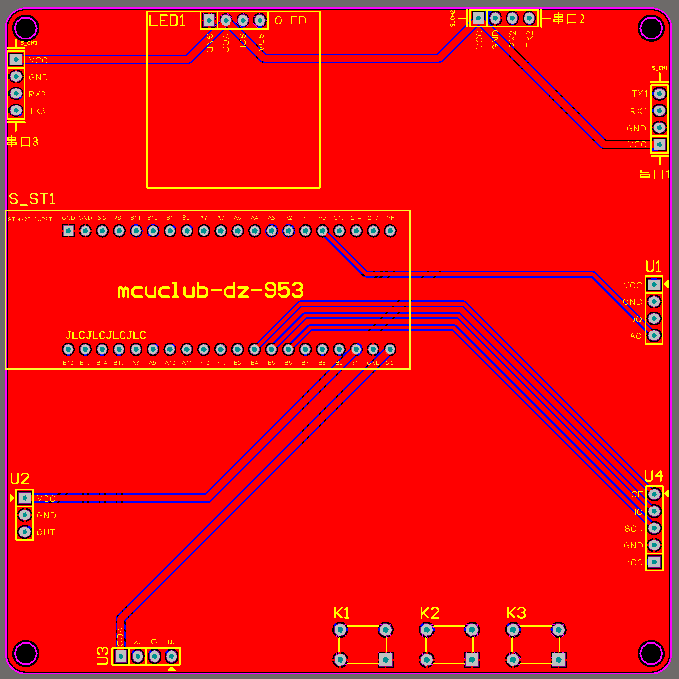 注意:PCB图中间有一个项目编号,隐藏在单片机底座下,插入单片机后不会看到。如果想截没有项目编号的PCB图,可在PCB源文件中点击删除。另外,如果想在实物PCB板上加自己的信息(比如日期、学号、姓名等),可联系客服。