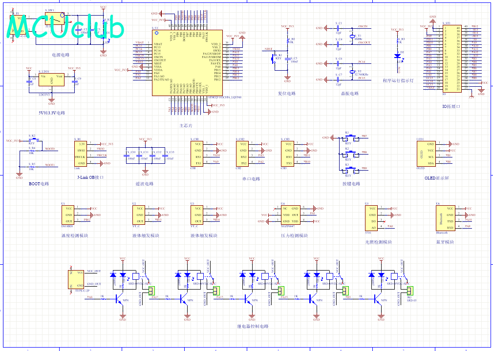 PCB图是由原理图导出,封装很大一部分都是作者自己绘制,不提供封装库,只提供连接好的源文件,可以直接在嘉立创进行打板。两层板,上下覆铜接地。