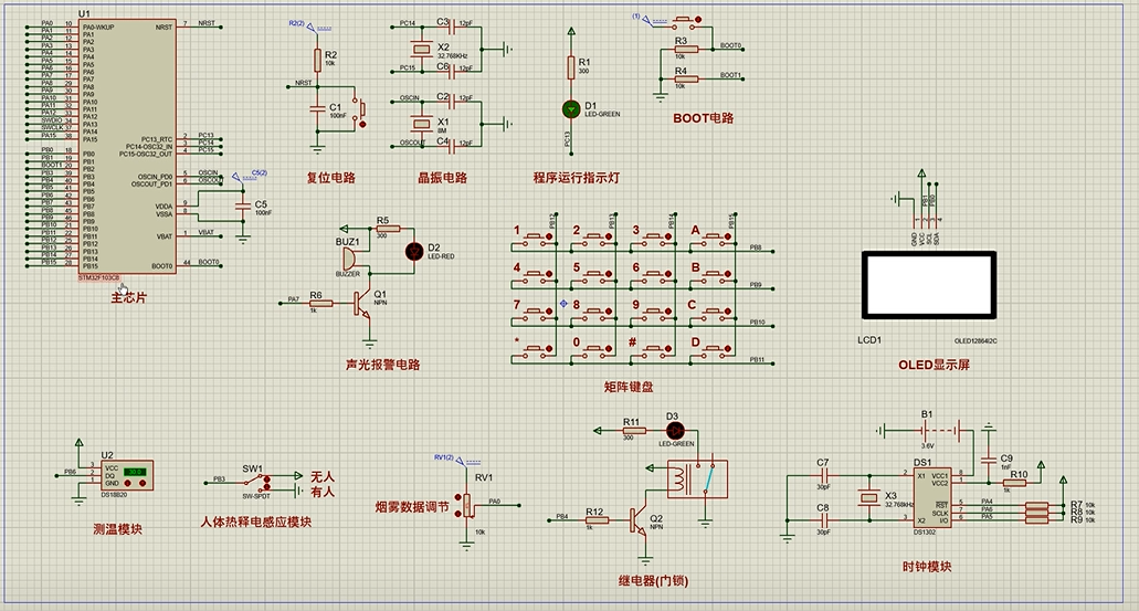 注意:部分实物元器件仿真中没有,仿真中会用其他工作原理相似的元件代替,这样可能导致实物程序和仿真程序不一样