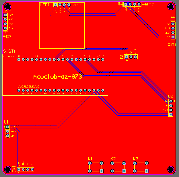 注意:PCB图中间有一个项目编号,隐藏在单片机底座下,插入单片机后不会看到。如果想截没有项目编号的PCB图,可在PCB源文件中点击删除。另外,如果想在实物PCB板上加自己的信息(比如日期、学号、姓名等),可联系客服。