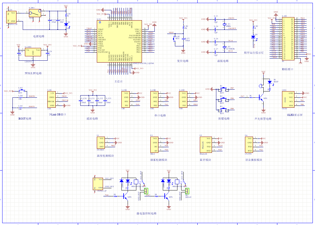 PCB图是由原理图导出,封装很大一部分都是作者自己绘制,不提供封装库,只提供连接好的源文件,可以直接在嘉立创进行打板。两层板,上下覆铜接地。