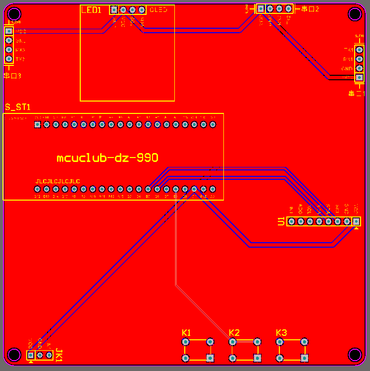 注意:PCB图中间有一个项目编号,隐藏在单片机底座下,插入单片机后不会看到。如果想截没有项目编号的PCB图,可在PCB源文件中点击删除。另外,如果想在实物PCB板上加自己的信息(比如日期、学号、姓名等),可联系客服。