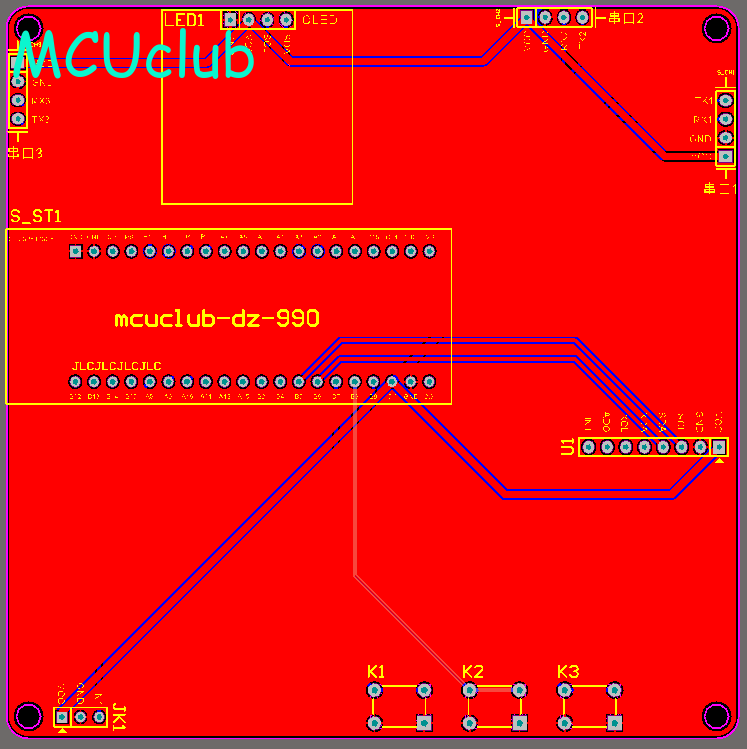 PCB图是由原理图导出,封装很大一部分都是作者自己绘制,不提供封装库,只提供连接好的源文件,可以直接在嘉立创进行打板。两层板,上下覆铜接地。
