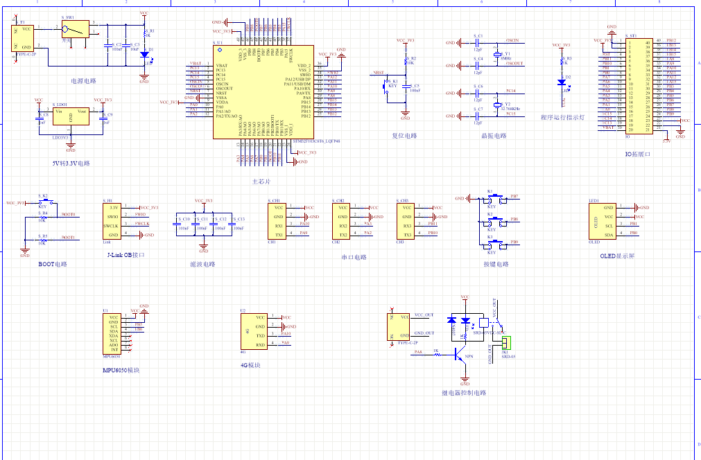 底板:底板在嘉立创进行打板,为绿色PCB板,两层板,厚度1.2,上下覆铜接地。元器件基本上为插针式,个别降压芯片会使用贴片式。