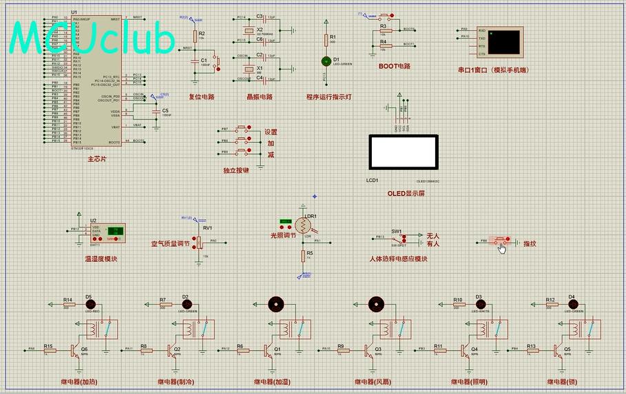 注意:部分实物元器件仿真中没有,仿真中会用其他工作原理相似的元件代替,这样可能导致实物程序和仿真程序不一样