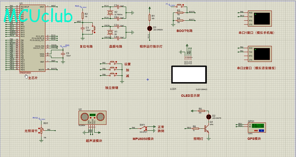 注意:部分实物元器件仿真中没有,仿真中会用其他工作原理相似的元件代替,这样可能导致实物程序和仿真程序不一样