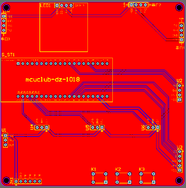 注意:PCB图中间有一个项目编号,隐藏在单片机底座下,插入单片机后不会看到。如果想截没有项目编号的PCB图,可在PCB源文件中点击删除。另外,如果想在实物PCB板上加自己的信息(比如日期、学号、姓名等),可联系客服。