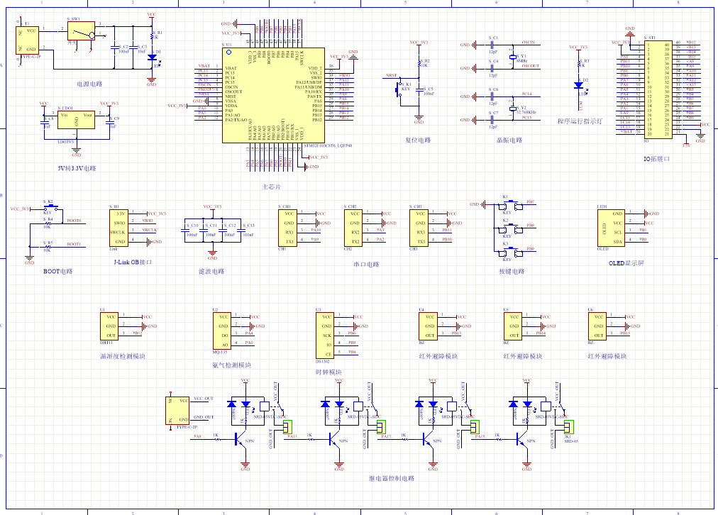 PCB图是由原理图导出,封装很大一部分都是作者自己绘制,不提供封装库,只提供连接好的源文件,可以直接在嘉立创进行打板。两层板,上下覆铜接地。