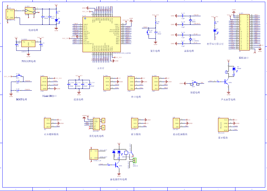 PCB图是由原理图导出,封装很大一部分都是作者自己绘制,不提供封装库,只提供连接好的源文件,可以直接在嘉立创进行打板。两层板,上下覆铜接地。
