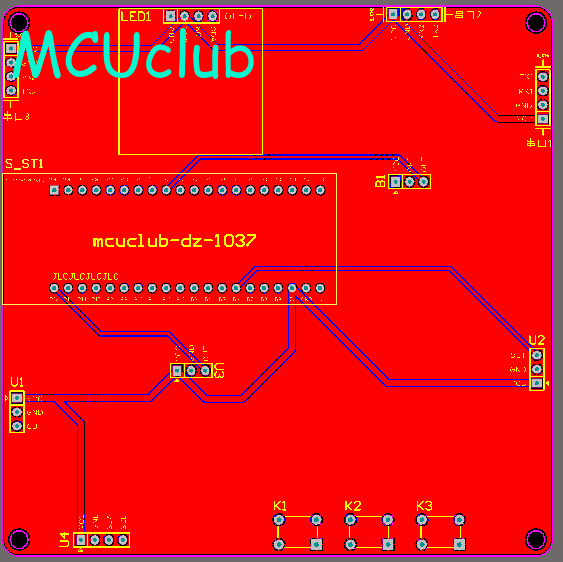 注意:PCB图中间有一个项目编号,隐藏在单片机底座下,插入单片机后不会看到。如果想截没有项目编号的PCB图,可在PCB源文件中点击删除。另外,如果想在实物PCB板上加自己的信息(比如日期、学号、姓名等),可联系客服。