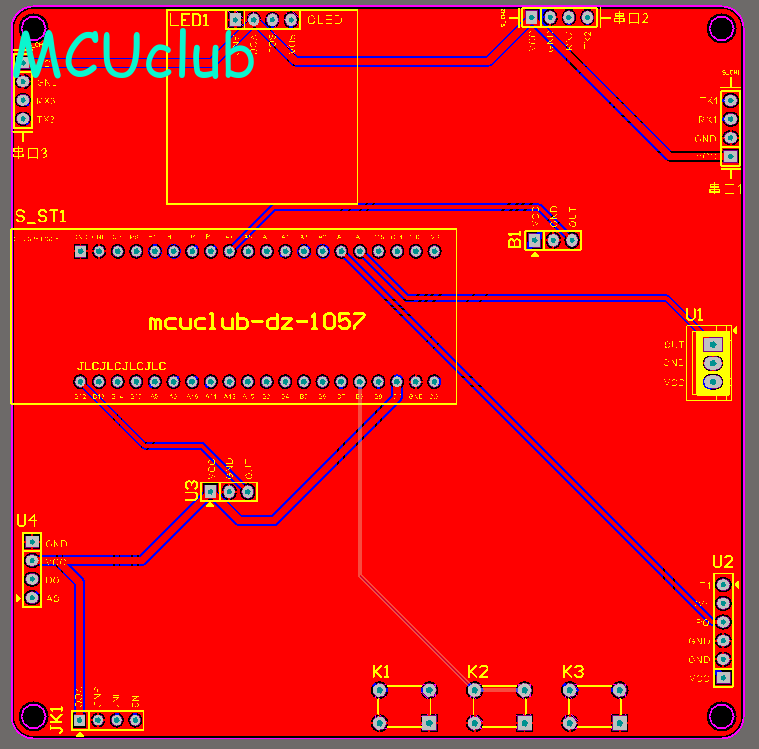 注意:PCB图中间有一个项目编号,隐藏在单片机底座下,插入单片机后不会看到。如果想截没有项目编号的PCB图,可在PCB源文件中点击删除。另外,如果想在实物PCB板上加自己的信息(比如日期、学号、姓名等),可联系客服。