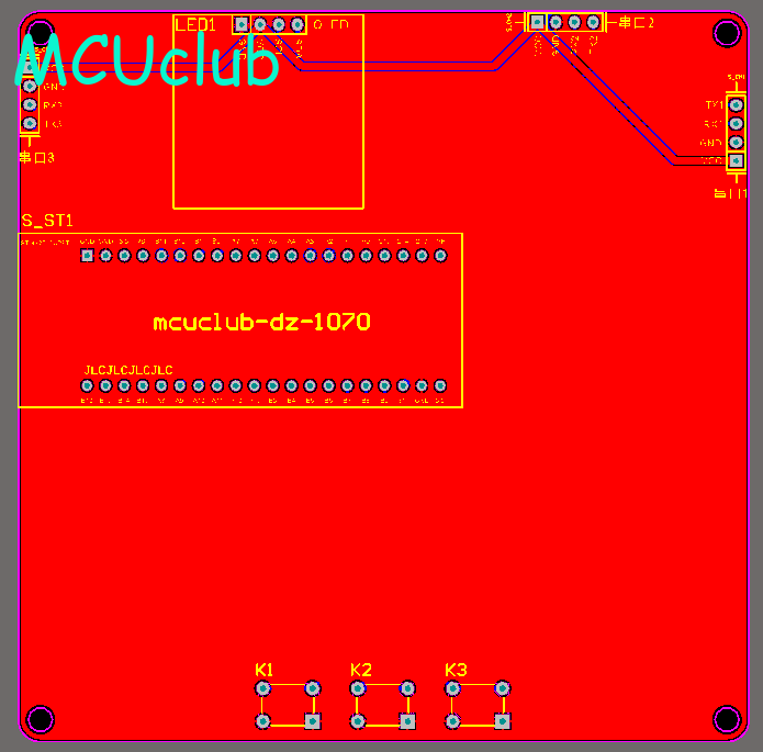 注意:PCB图中间有一个项目编号,隐藏在单片机底座下,插入单片机后不会看到。如果想截没有项目编号的PCB图,可在PCB源文件中点击删除。另外,如果想在实物PCB板上加自己的信息(比如日期、学号、姓名等),可联系客服。