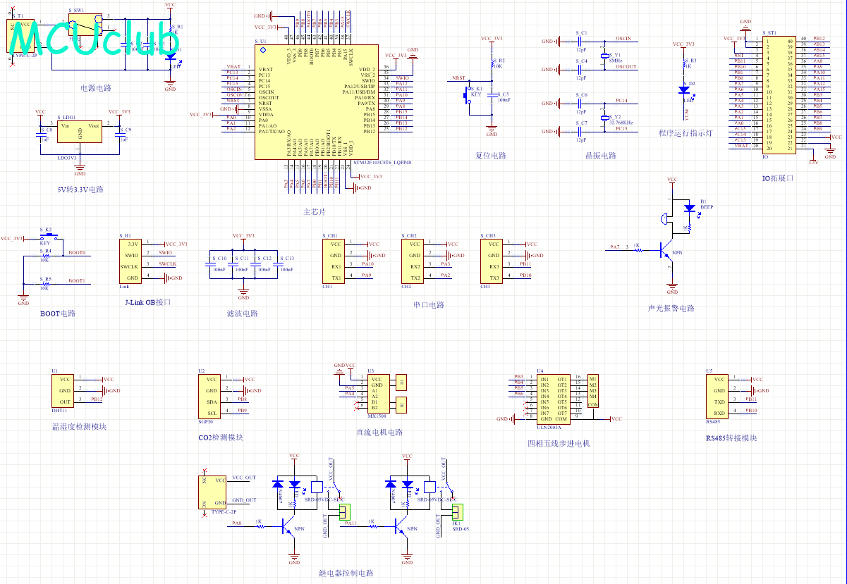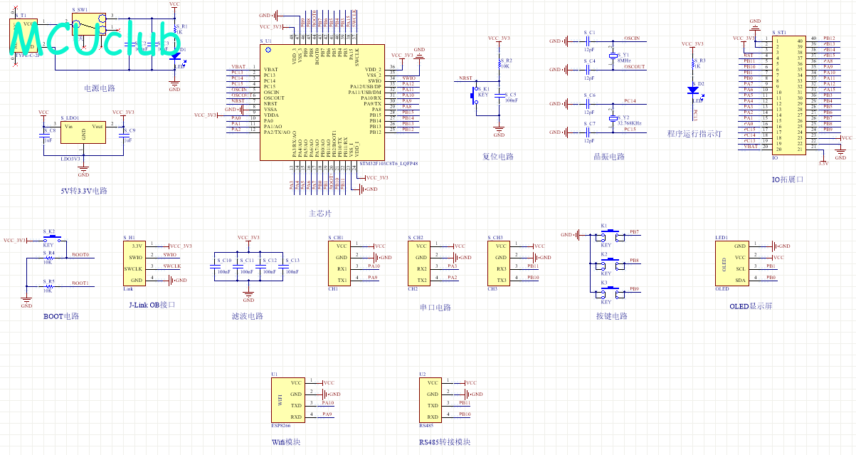 PCB图是由原理图导出,封装很大一部分都是作者自己绘制,不提供封装库,只提供连接好的源文件,可以直接在嘉立创进行打板。两层板,上下覆铜接地。