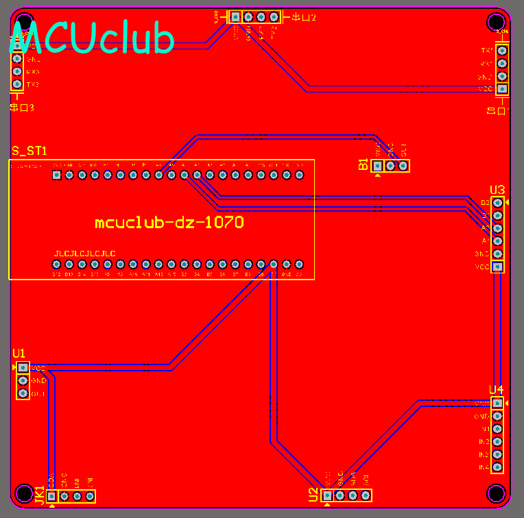 底板:底板在嘉立创进行打板,为绿色PCB板,两层板,厚度1.2,上下覆铜接地。元器件基本上为插针式,个别降压芯片会使用贴片式。