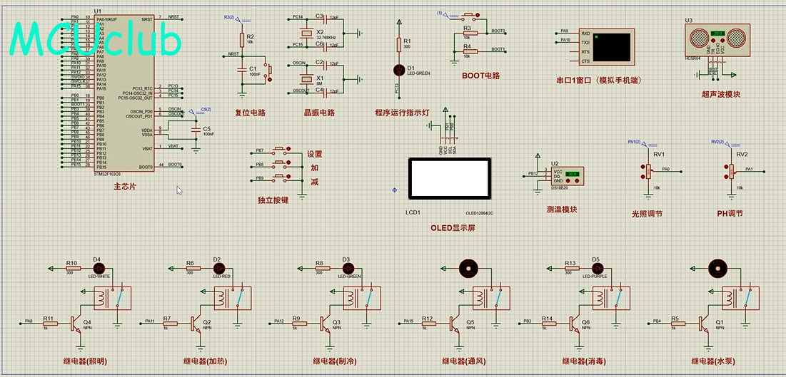 注意:部分实物元器件仿真中没有,仿真中会用其他工作原理相似的元件代替,这样可能导致实物程序和仿真程序不一样
