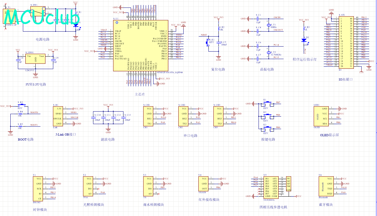 注意:原理图只是画出了模块的引脚图,而并不是模块的内部结构原理图