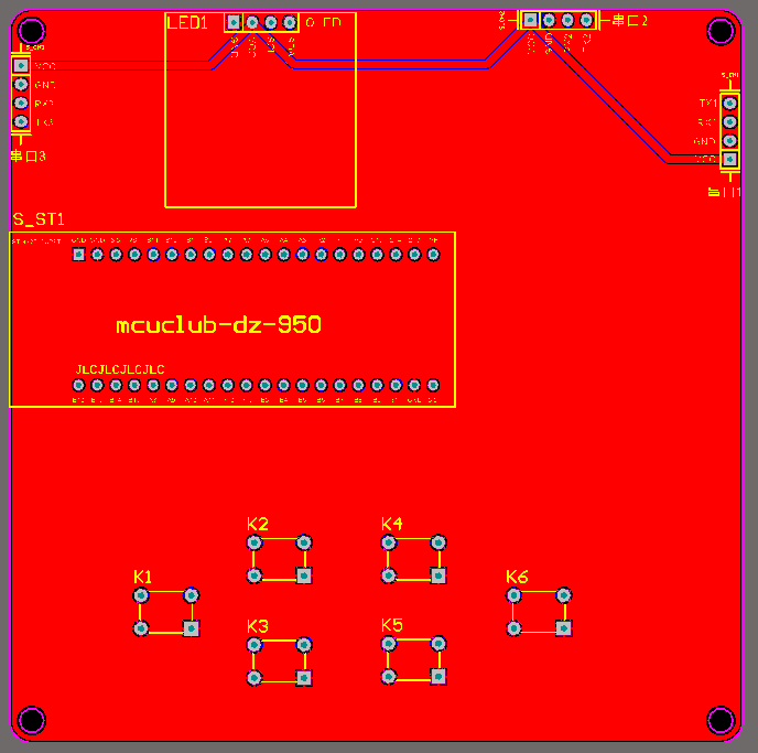 注意:PCB图中间有一个项目编号,隐藏在单片机底座下,插入单片机后不会看到。如果想截没有项目编号的PCB图,可在PCB源文件中点击删除。另外,如果想在实物PCB板上加自己的信息(比如日期、学号、姓名等),可联系客服。