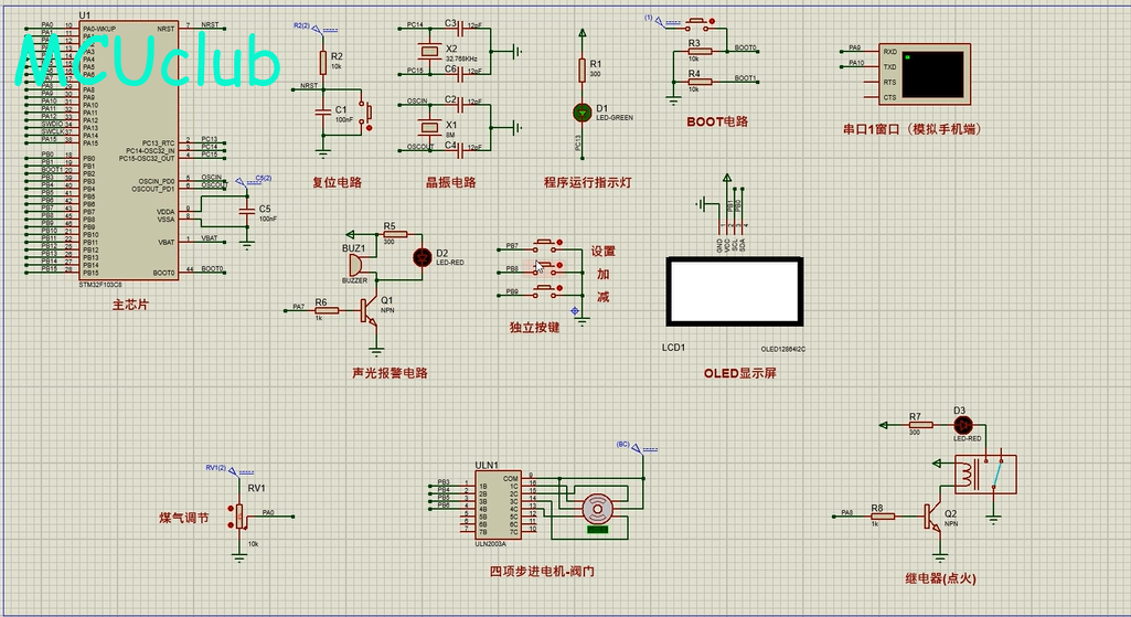 注意:部分实物元器件仿真中没有,仿真中会用其他工作原理相似的元件代替,这样可能导致实物程序和仿真程序不一样