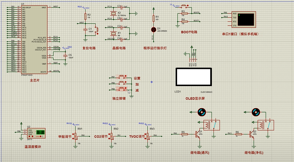 注意:部分实物元器件仿真中没有,仿真中会用其他工作原理相似的元件代替,这样可能导致实物程序和仿真程序不一样