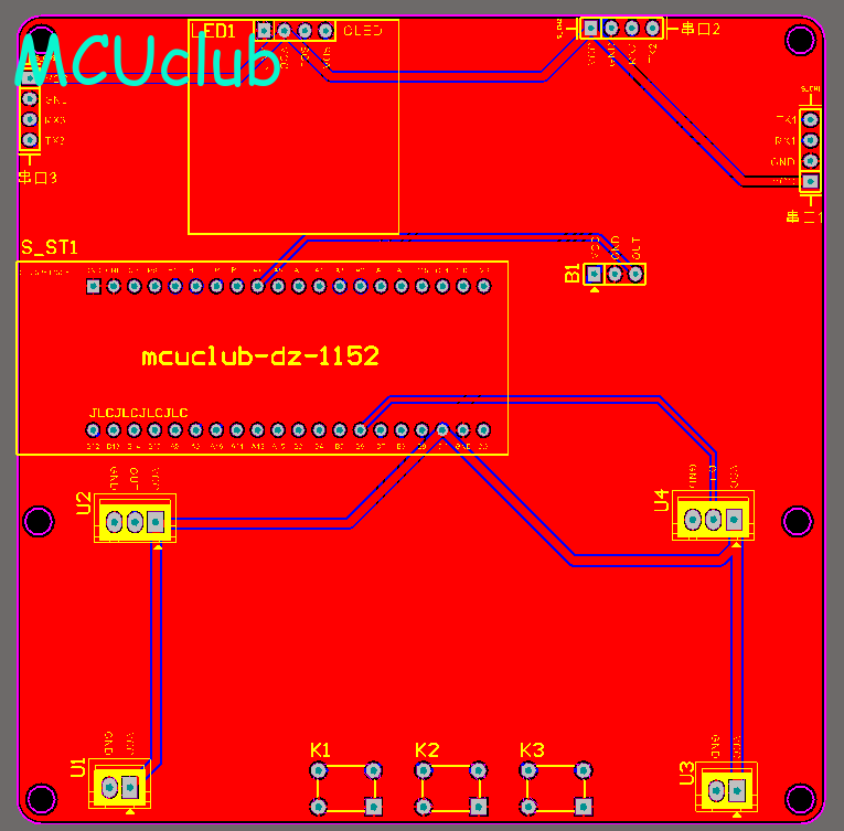 注意:PCB图中间有一个项目编号,隐藏在单片机底座下,插入单片机后不会看到。如果想截没有项目编号的PCB图,可在PCB源文件中点击删除。另外,如果想在实物PCB板上加自己的信息(比如日期、学号、姓名等),可联系客服。