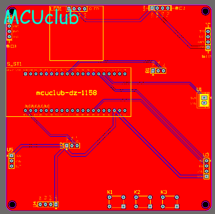 注意:PCB图中间有一个项目编号,隐藏在单片机底座下,插入单片机后不会看到。如果想截没有项目编号的PCB图,可在PCB源文件中点击删除。另外,如果想在实物PCB板上加自己的信息(比如日期、学号、姓名等),可联系客服。