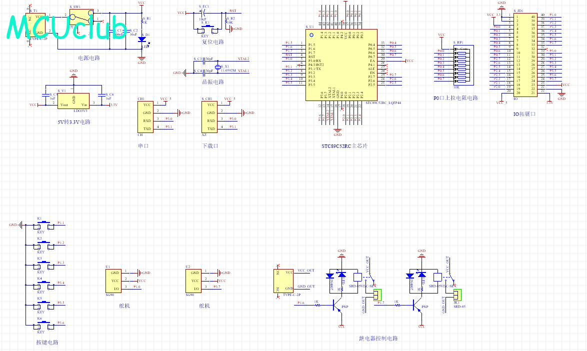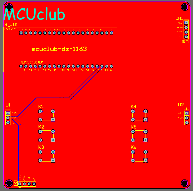 PCB图是由原理图导出,封装很大一部分都是作者自己绘制,不提供封装库,只提供连接好的源文件,可以直接在嘉立创进行打板。两层板,上下覆铜接地。