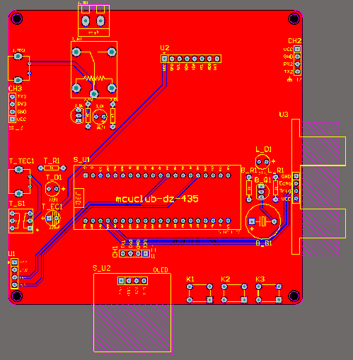 注意:PCB图中间有一个项目编号,隐藏在单片机底座下,插入单片机后不会看到。如果想截没有项目编号的PCB图,可在PCB源文件中点击删除。另外,如果想在实物PCB板上加自己的信息(比如日期、学号、姓名等),可联系客服。