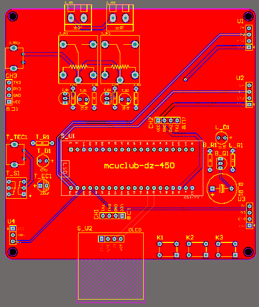 注意:PCB图中间有一个项目编号,隐藏在单片机底座下,插入单片机后不会看到。如果想截没有项目编号的PCB图,可在PCB源文件中点击删除。另外,如果想在实物PCB板上加自己的信息(比如日期、学号、姓名等),可联系客服。
