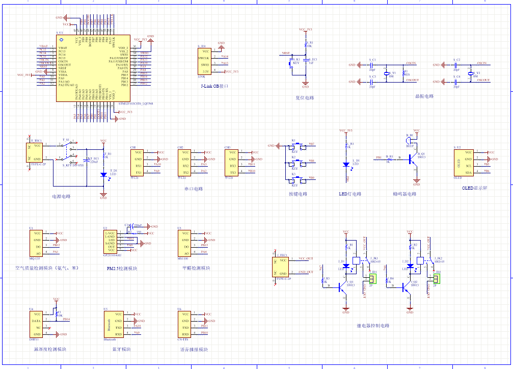 PCB图是由原理图导出,封装很大一部分都是作者自己绘制,不提供封装库,只提供连接好的源文件,可以直接在嘉立创进行打板。两层板,上下覆铜接地。