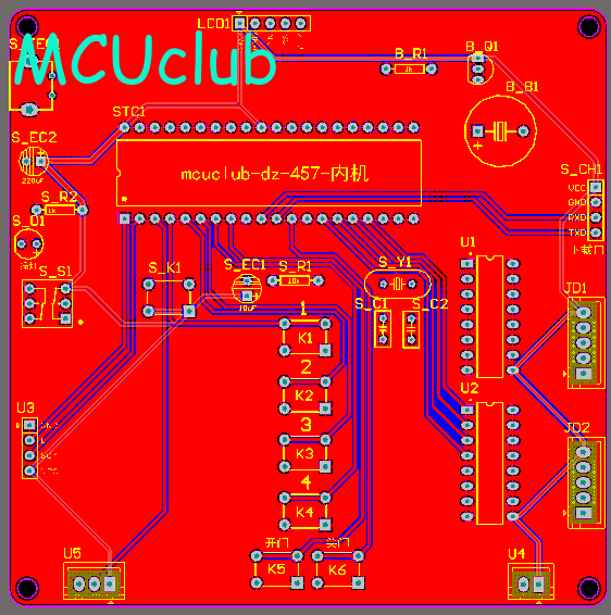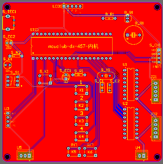 注意:PCB图中间有一个项目编号,隐藏在单片机底座下,插入单片机后不会看到。如果想截没有项目编号的PCB图,可在PCB源文件中点击删除。另外,如果想在实物PCB板上加自己的信息(比如日期、学号、姓名等),可联系客服。