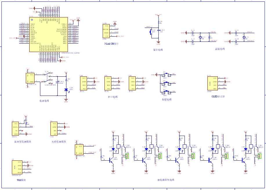 PCB图是由原理图导出,封装很大一部分都是作者自己绘制,不提供封装库,只提供连接好的源文件,可以直接在嘉立创进行打板。两层板,上下覆铜接地。