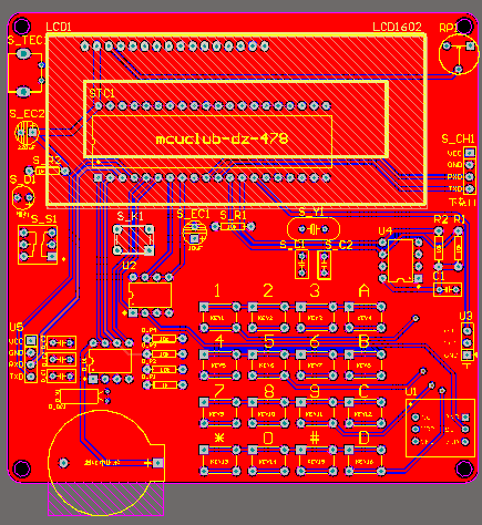 注意:PCB图中间有一个项目编号,隐藏在单片机底座下,插入单片机后不会看到。如果想截没有项目编号的PCB图,可在PCB源文件中点击删除。另外,如果想在实物PCB板上加自己的信息(比如日期、学号、姓名等),可联系客服。