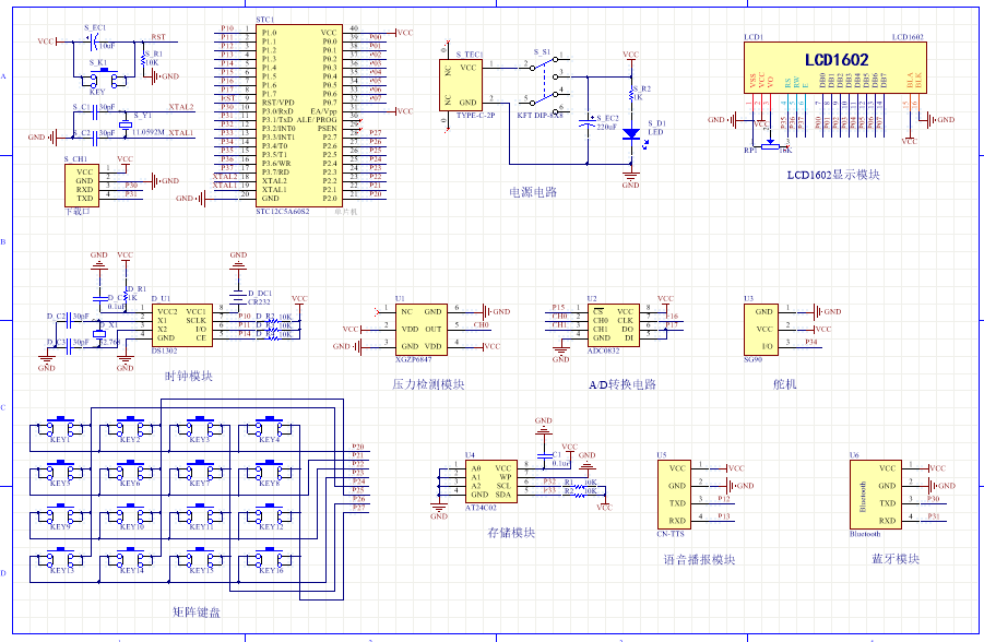 注意:原理图只是画出了模块的引脚图,而并不是模块的内部结构原理图