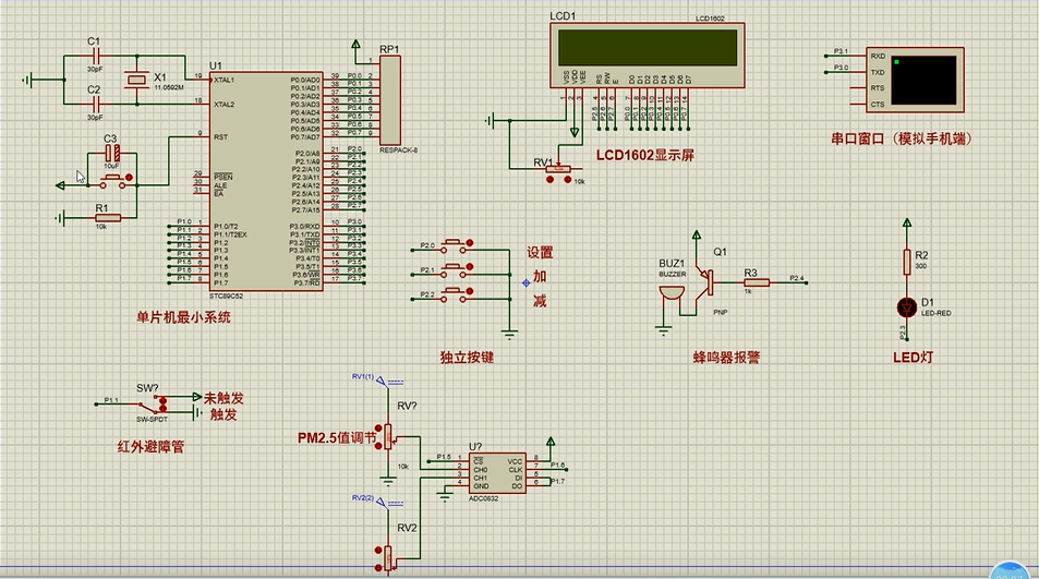 注意:部分实物元器件仿真中没有,仿真中会用其他工作原理相似的元件代替,这样可能导致实物程序和仿真程序不一样