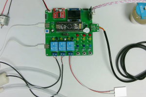 7、通过一个继电器模拟进水、另一个继电器模拟出水、直流电机模拟洗涤
