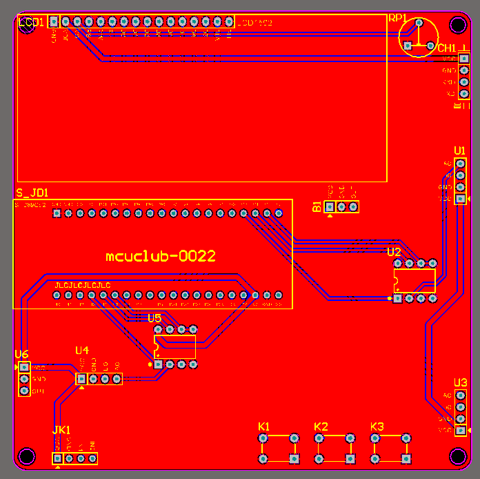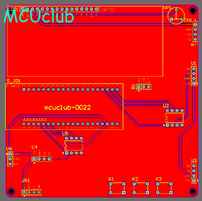 PCB图是由原理图导出,封装很大一部分都是作者自己绘制,不提供封装库,只提供连接好的源文件,可以直接在嘉立创进行打板。两层板,上下覆铜接地。