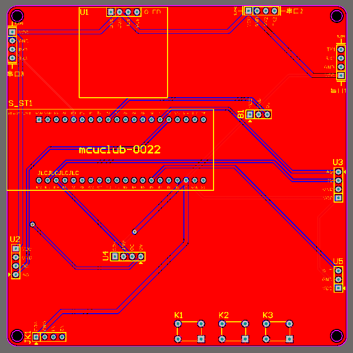 底板:底板在嘉立创进行打板,为绿色PCB板,两层板,厚度1.2,上下覆铜接地。元器件基本上为插针式,个别降压芯片会使用贴片式。