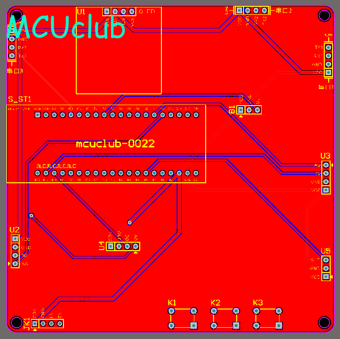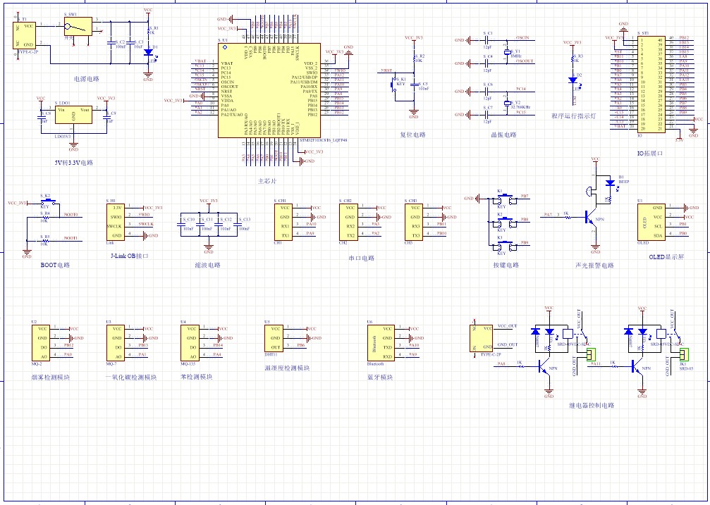 PCB图是由原理图导出,封装很大一部分都是作者自己绘制,不提供封装库,只提供连接好的源文件,可以直接在嘉立创进行打板。两层板,上下覆铜接地。